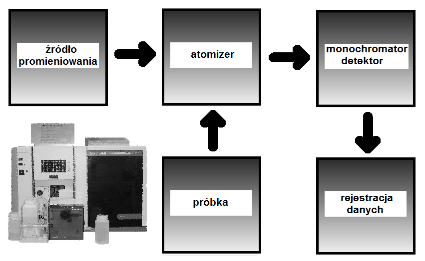 Rysunek 1. Schemat blokowy spektrometru absorpcyjnej spektrometrii atomowej