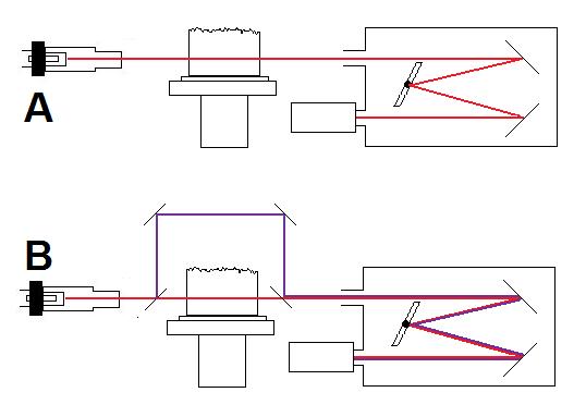 Rysunek 2. Spektrometr jednowiązkowy (A) i dwuwiązkowy (B)
