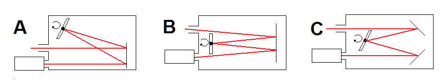 Rysunek 6. Monochromatory Littrowa (A), Eberta (B) i Czernego-Turnera (C)