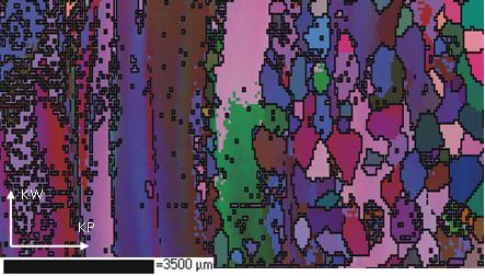 Blachy poddano, więc badaniom przy użyciu metody EBSD. Materiał okazał się wyjątkowo jednorodny (rys. 5), zatem nie była to wada materiału.
