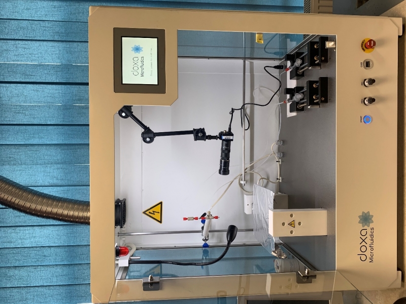 Rys. 2. Urządzenia do przeprowadzania procesu elektroprzędzenia znajdujące się w Laboratorium Naukowo-Dydaktycznym Nanotechnologii i Technologii Materiałowych Wydziału Mechanicznego Technologicznego Politechniki Śląskiej: Doxa Microfluidics StartUp Electrospinning Machine (a, b); EHD (Electrospinning) – Urządzenie Yflow Nanotechnology Solutions model 2.2.D -500 (c, d)