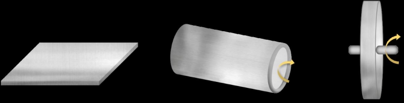 Rys. 6. Typy kolektorów (od lewej): płaski, w postaci płyty, walcowy, w postaci dysku (opracowanie własne)