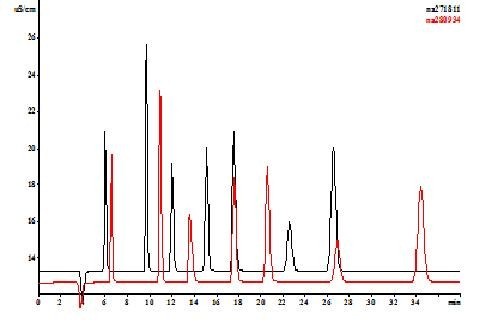 Natężenie przepływu eluentu – 0,7 ml/min